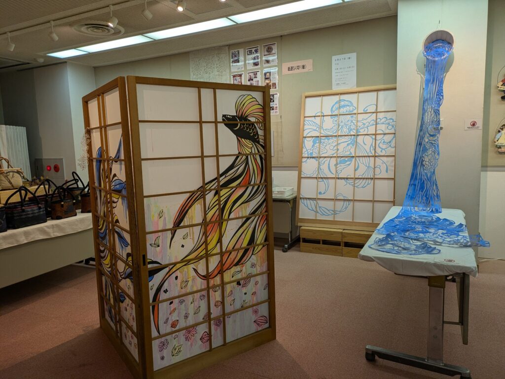 展示コーナーの1画に即売のテーブルに作品を置いています。
