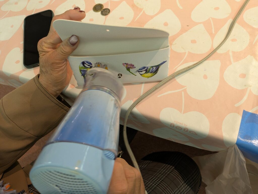 小物ケース(メガネケース?)にデコパージュをされた方の作品です。