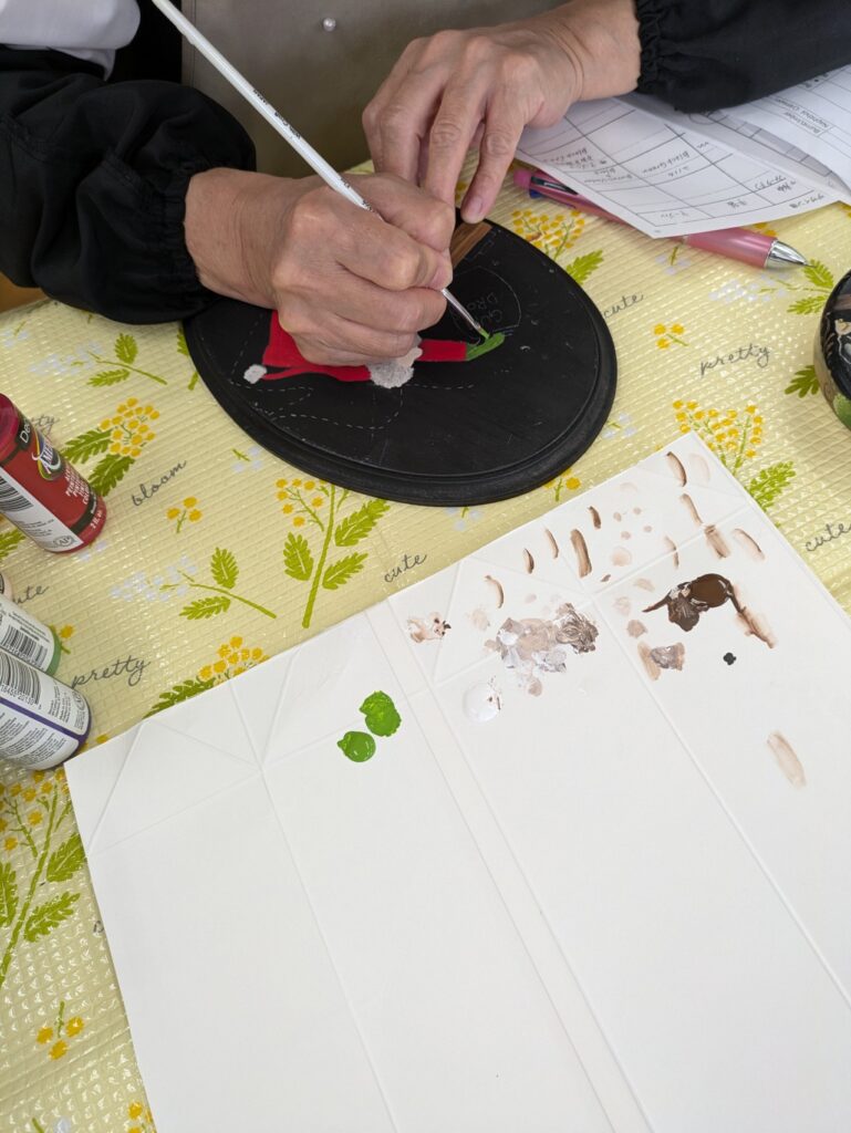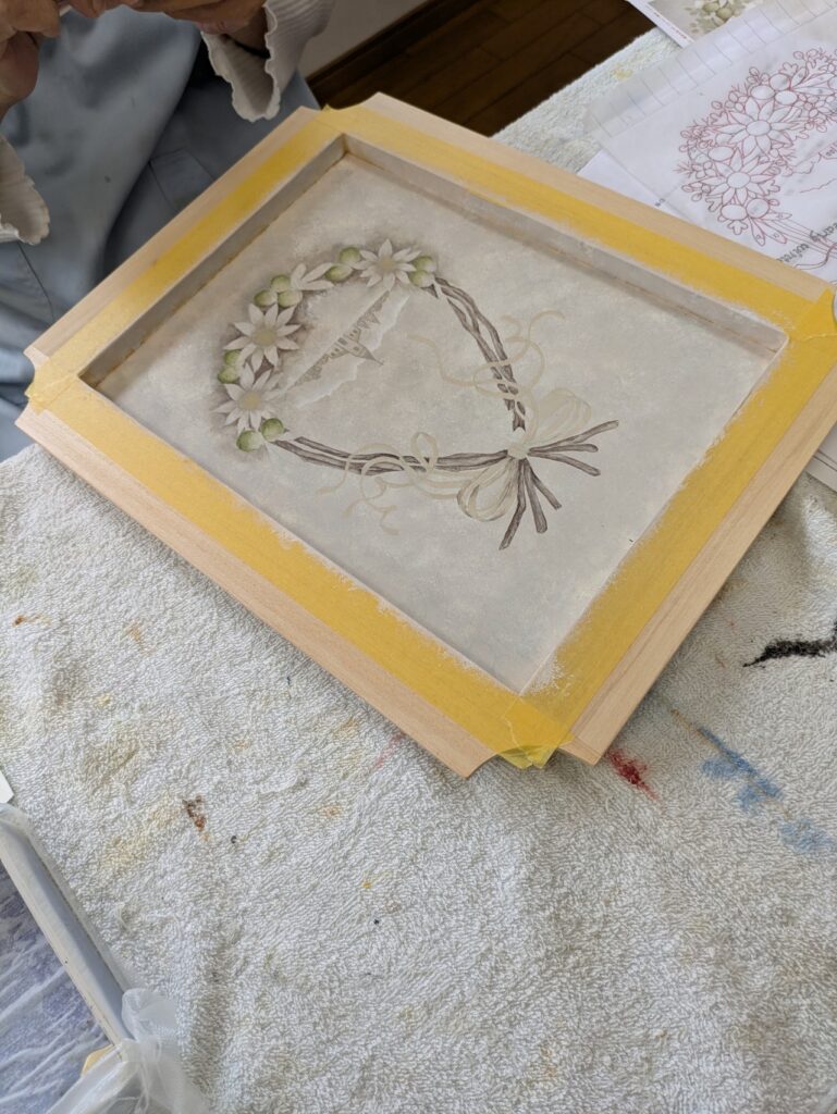 今回はきれいな花を描く方に決めて、素材はウッドにされました!
