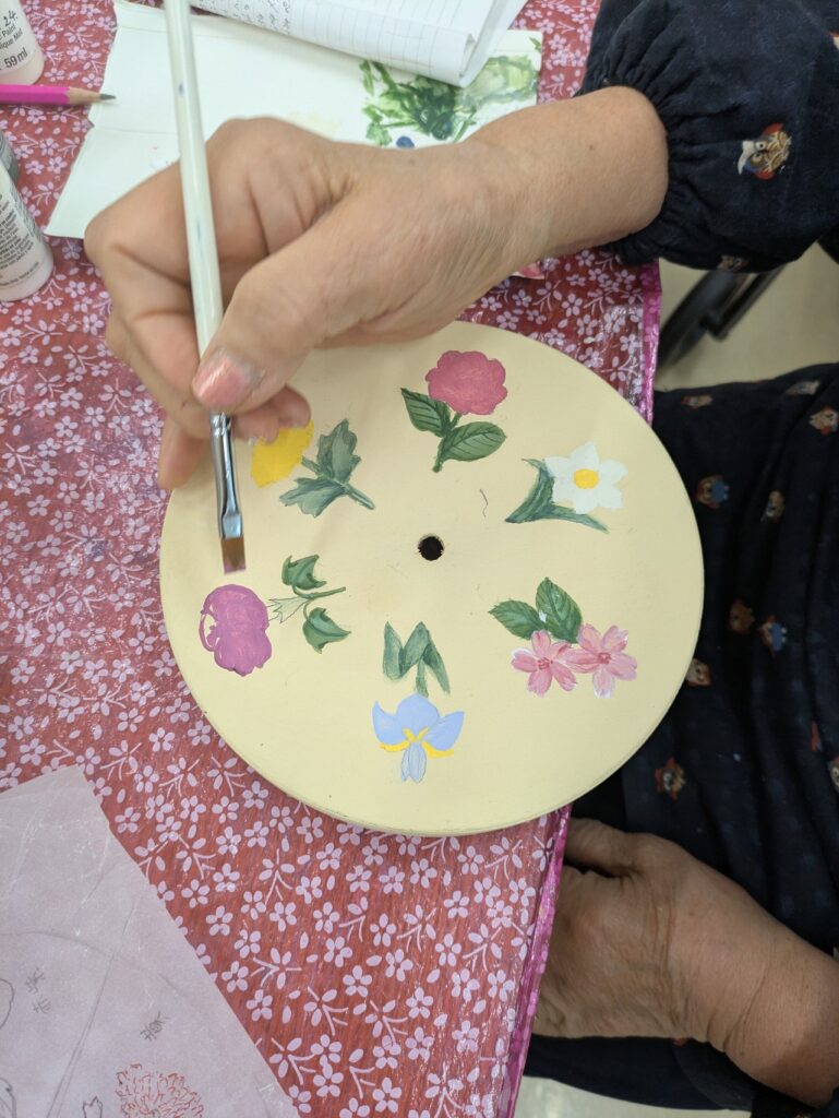 中には決めた色(次回持ってくる予定の色)があったのに、余った絵の具がもったいないからと、ついでに塗ってしまわれ、今後どんな色の花になるか?
