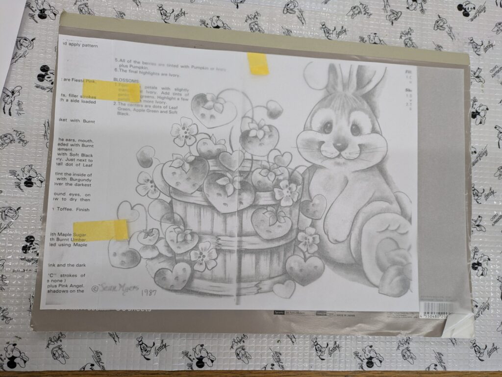 色の配置が気になるものの、図案を選んでトレースして、素材に転写して絵具を選んでここまでの作業をさっさとこなしました。
