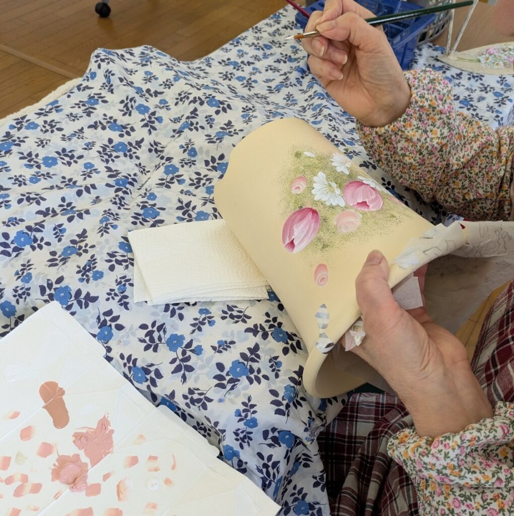 ”昔取った杵柄”は嘘は付きませんね。すぐにきれいなストロークで次々に花を描いていきました!