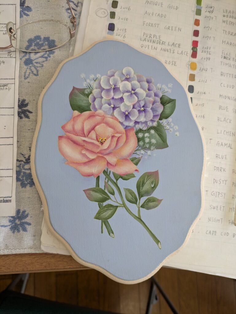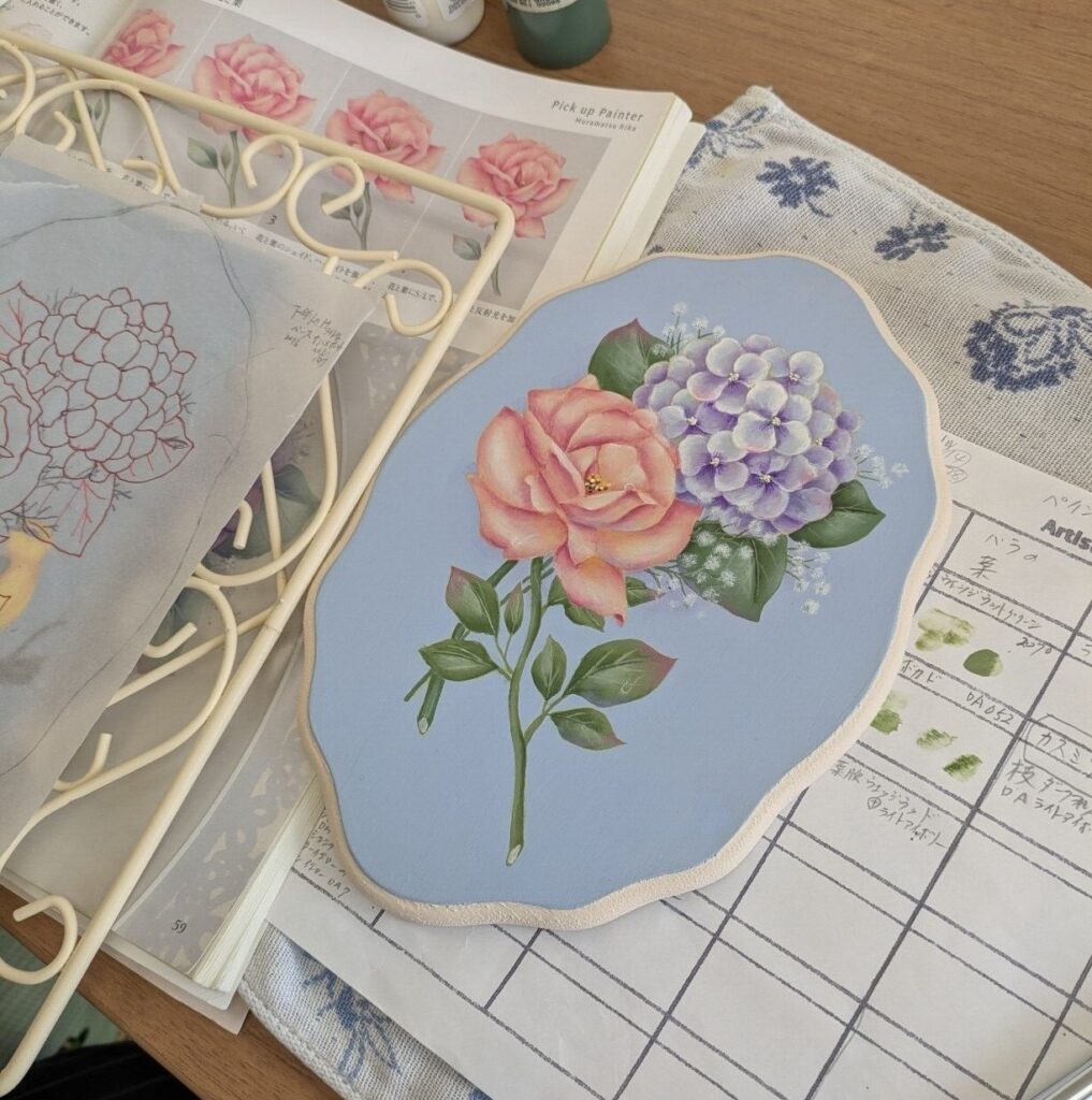 次回は葉っぱや小花をさらに加えていただく予定です。ストローク作品はすぐに仕上がるので、たまにはいいものですね!いつも時間がかかるものばかりですから。