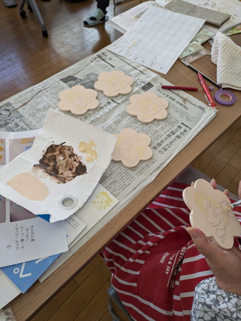 作品はコースターにかわいいカントリーうさぎを描くことになっていました。