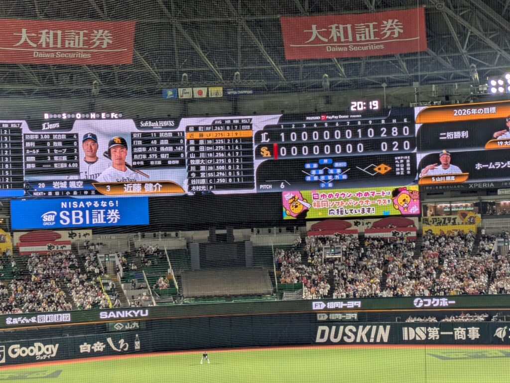 西武戦2日目も昨日に続き負け試合でした。8回まで2塁までの出塁もなく、全く盛り上がらない試合でした。9回でやっとヒットが出て1点取れたけど、そのわずかな時間だけが盛り上がった試合。