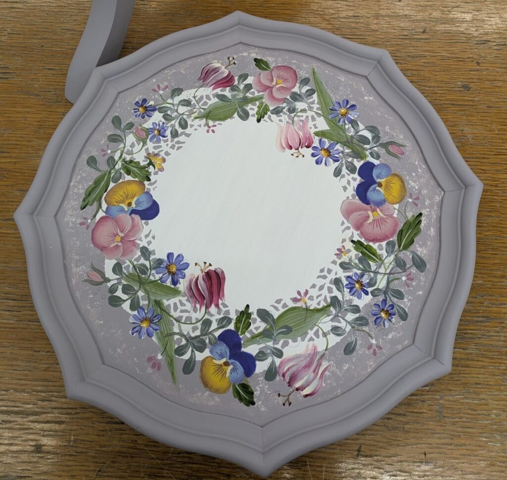 こういう何段にもなっている素材の縁部分の塗り分けはとても悩みますね。もう一段下の縁部分の色を変えるのも素敵だろうし、細い段の部分だけを変えるのもアリだと思います。