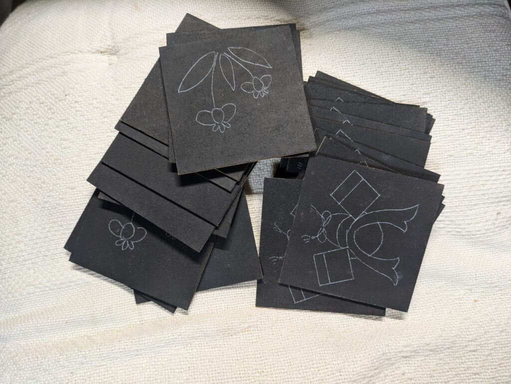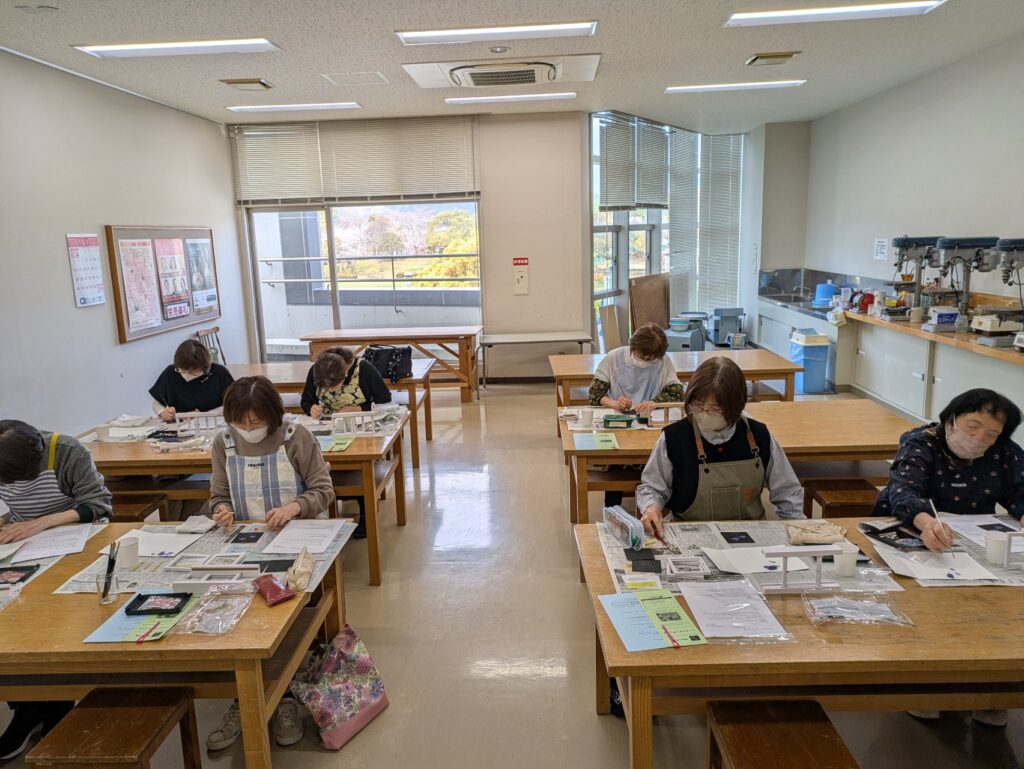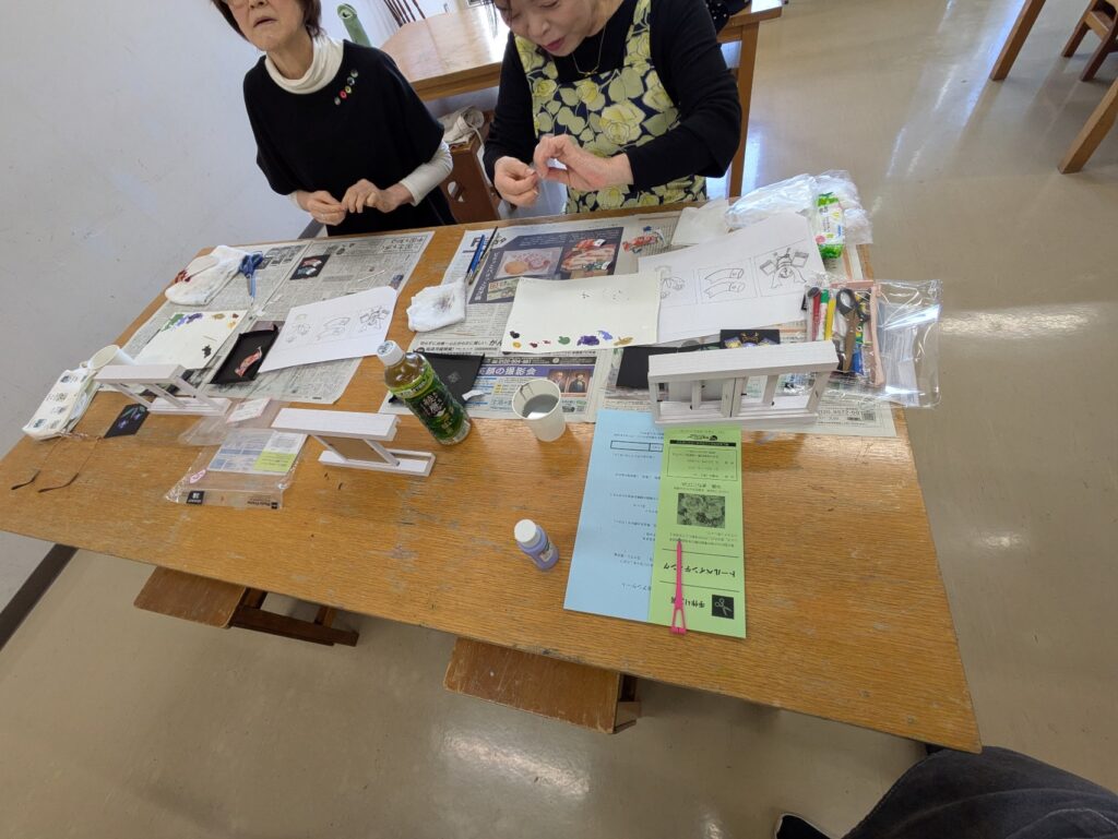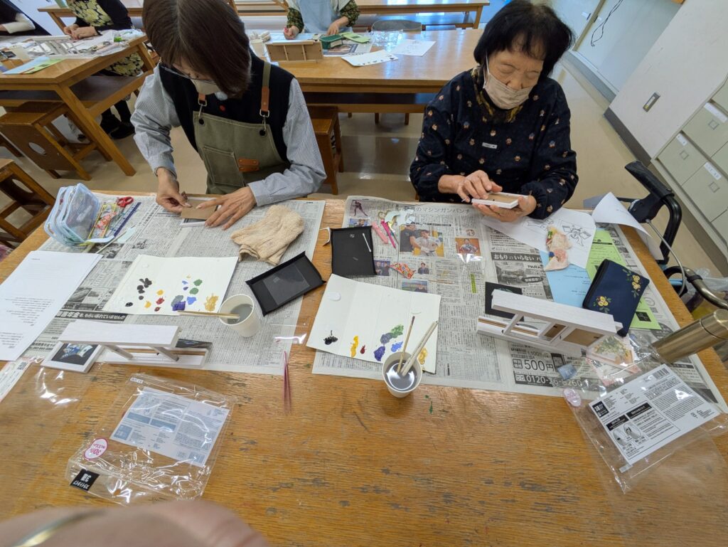 ベース塗りから図案の転写、小物のセットを人数分。