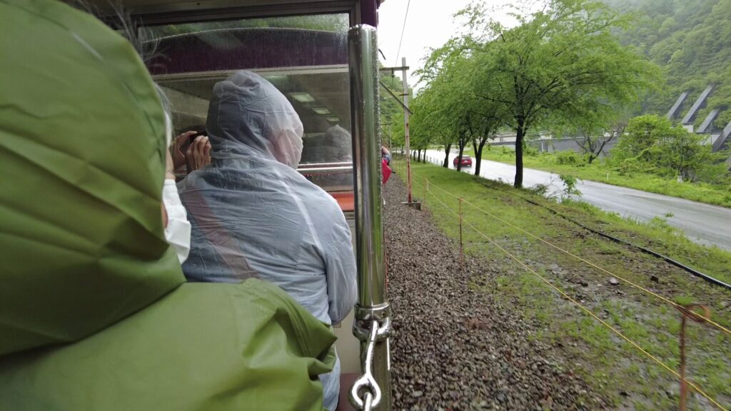 夫は「トロッコがいい。トロッコに乗りたい。醍醐味を味わわないと!」とオープン席のトロッコ車両で楽しくビデオ撮影していたようです(笑)
